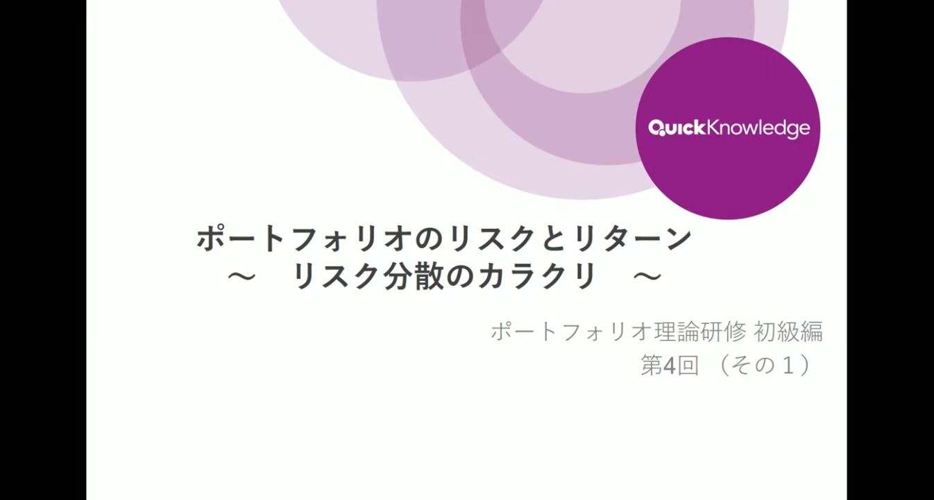 第4回 ポートフォリオのリスクとリターン (その1)(22:36) 第4回 ポートフォリオのリスクとリターン(その1) |